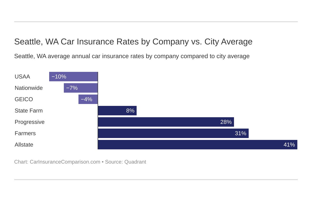 Seattle, WA Car Insurance Rates by Company vs. City Average